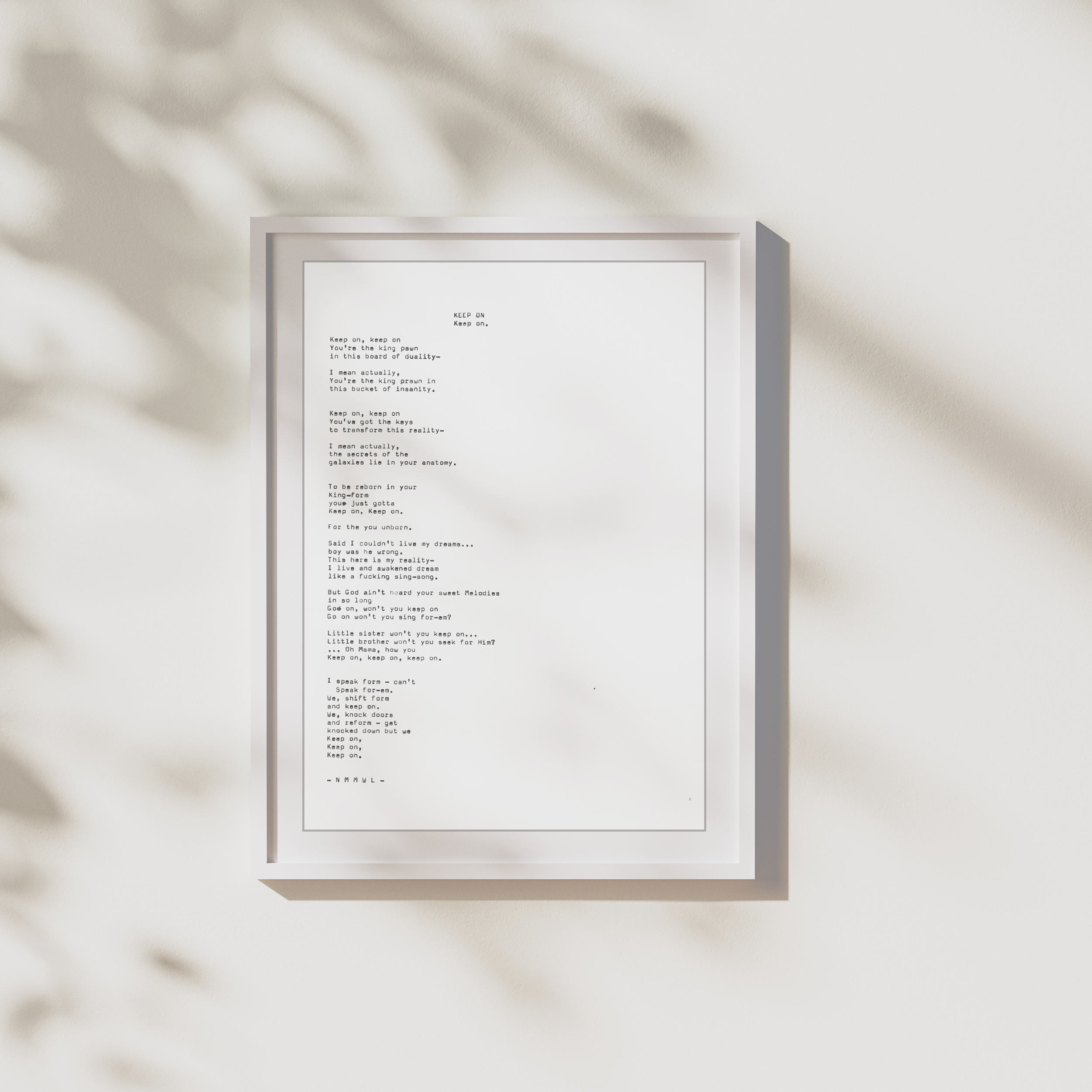 Each poetry print is an original work, written by Nyaluak Leth and typed on a vintage typewriter before being transformed into a high-quality art print. These pieces are perfect for gifting – whether you're celebrating a birthday, showing love, or creating space for emotional, soulful art in your home.